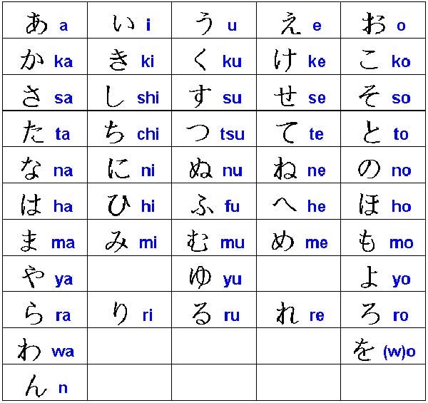 Bảng Hiragana gồm 46 ký tự cơ bản, được chia thành các hàng như sau: